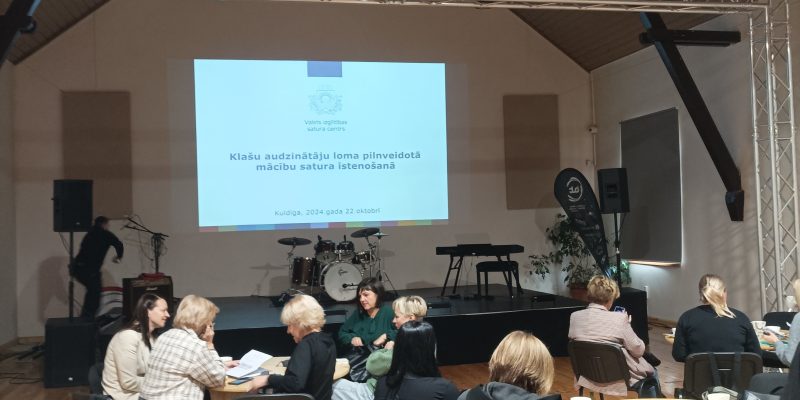 Otrdien, 22.oktobrī Kuldīgas Jauniešu mājā pulcējās Kurzemes reģiona pašvaldību un izglītības iestāžu audzināšanas darba koordinatori, plašākas skolēnu izglītības pieredzes koordinatori un klašu audzinātāji, lai aktualizētu zināšanas par klašu audzinātāju lomu pilnveidotā mācību satura īstenošanā.