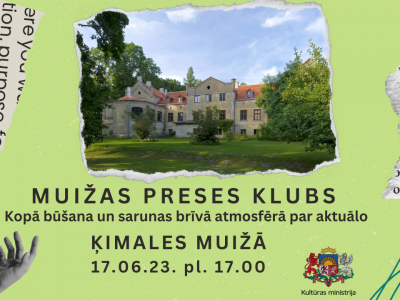 17. jūnijā plkst. 17.00 Ķimales muižā, Padures pagastā ikviens laipni gaidīts uz sarunu vakaru “Muižas ...