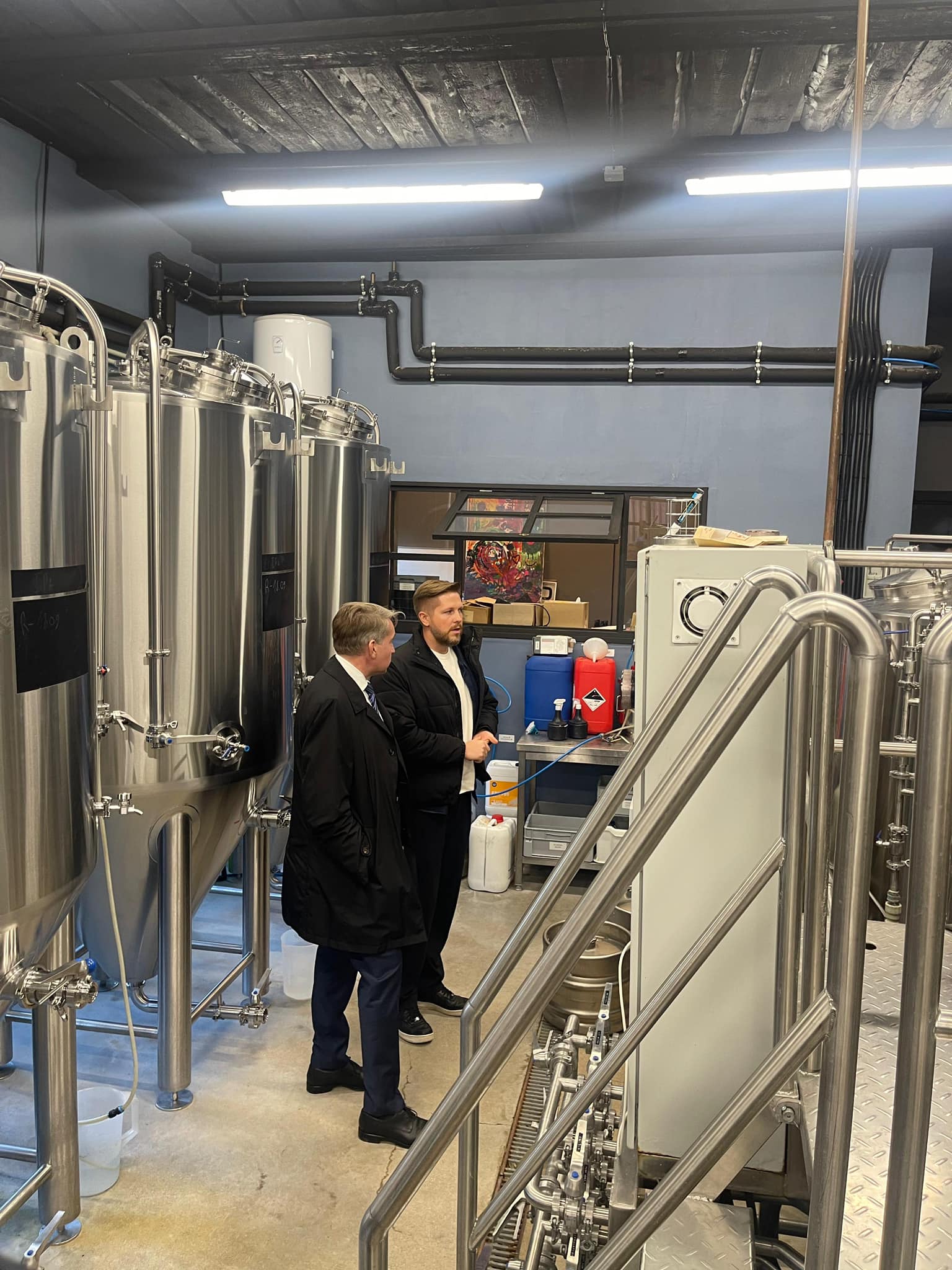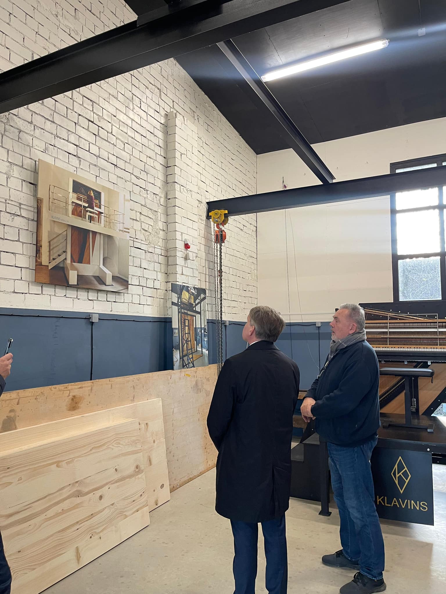 Radoši industriālā Kaļķu ielas kvartālā ministrs tikās ar uzņēmuma pārstāvi Robertu Jansonu, kurš pastāstīja, kā pirms četriem gadiem no pamestas garāžas teritorija kļuvusi par mājvietu vietējās uzņēmējdarbības attīstībai.