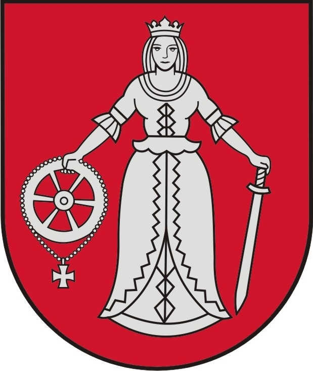 Heraldiskais apraksts – „Sarkanā laukā sudraba jaunava – Sv.Katrīna – ar kroni; labajā rokā tāds pats rats ar tam piekārtu krustiņu, kreisajā – lejupvērsts zobens; sudraba izrobota šaurapmale”.