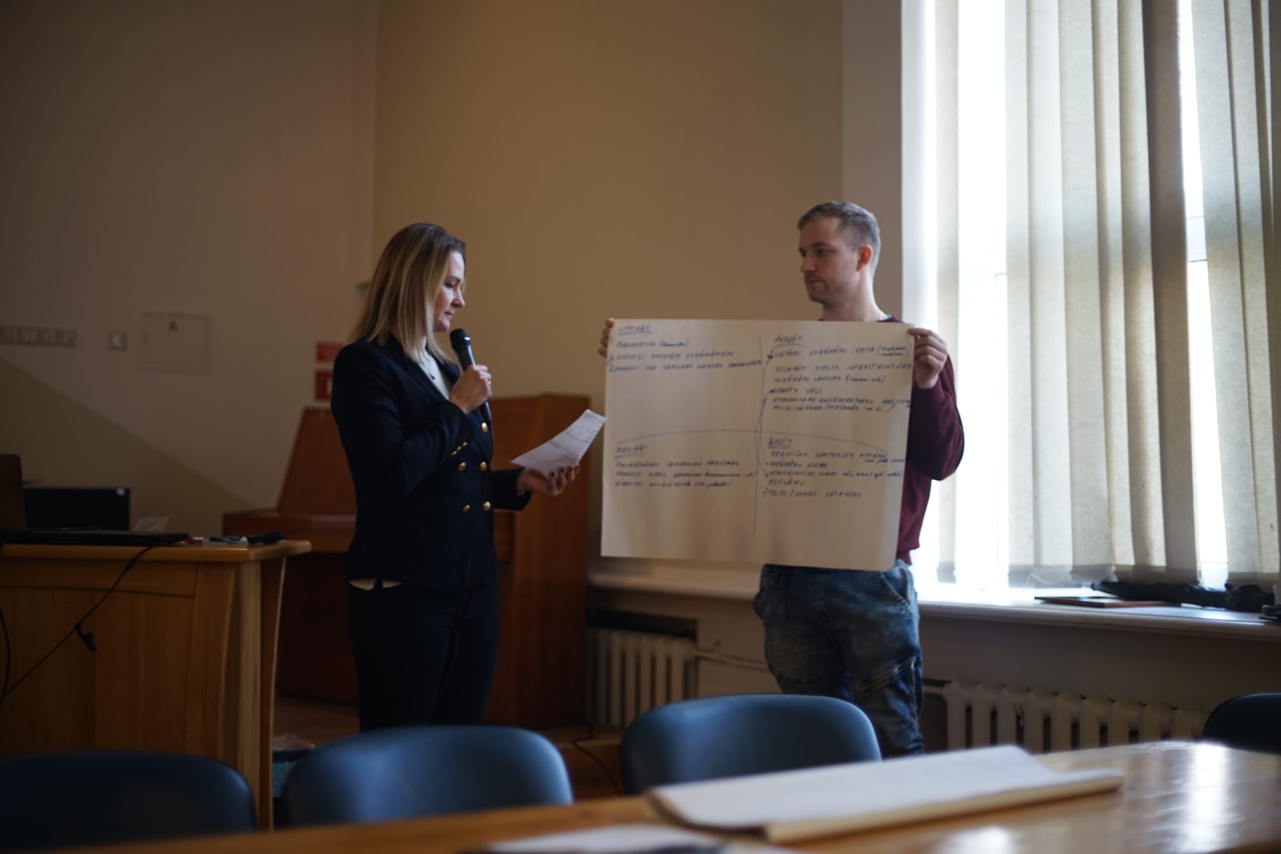 Pasākums notika divās daļās. Pirmajā daļā domes priekšsēdētāja Inese Astaševska un izpilddirektors Rimants Safonovs ikvienu iepazīstināja ar plānotajiem projektiem un attīstības potenciālu Skrundas pusē, kā arī virzienus, kā uzņēmējiem un pašvaldībai savstarpēji sadarboties. Biedrības “Darīsim paši!” administratīvā vadītāja Ieva Birbele stāstīja par aktuālajiem projektiem, kuros uzņēmēji var startēt: “Interese no uzņēmējiem šajā pusē ir liela, un tas ir svarīgi. Gribu ieteikt nebaidīties. Ja ir ideja, jāatnāk uz konsultāciju, lai to pārrunātu, un sameklētu risinājumu, kā to attīstīt. Es redzu, ka Skrundai ir liels potenciāls.”